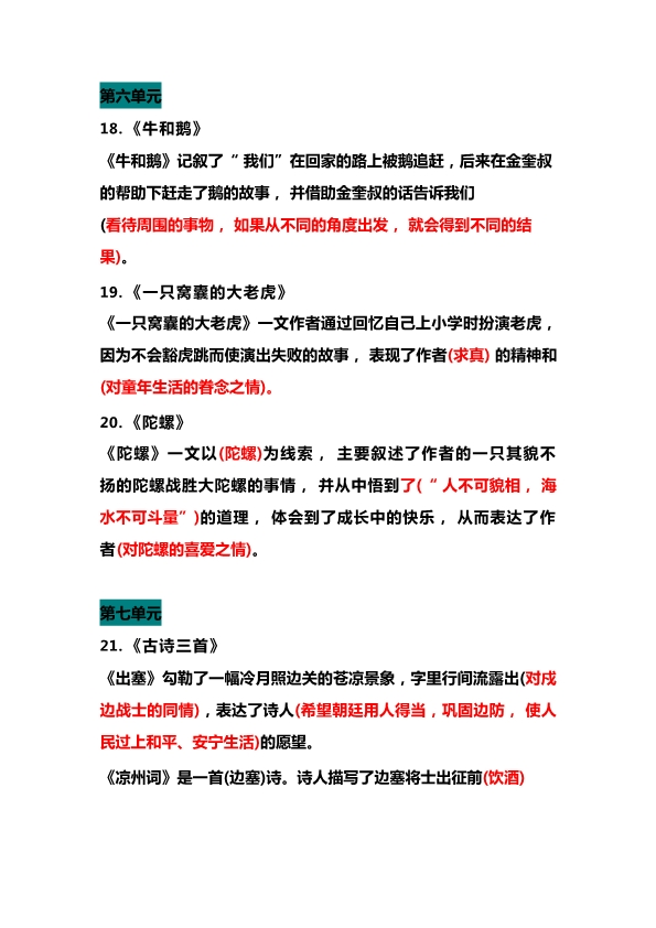 在这份总结中,每篇课文的中心思想都被概括得非常准确和简明。学生们可以通过阅读这份总结,快速地回忆起课文中的重点和要点,加深对课文的理解和记忆。同时,总结还针对每篇课文的特点和难点进行了分析和讲解,方便学生们更好地掌握课文的核心内容。