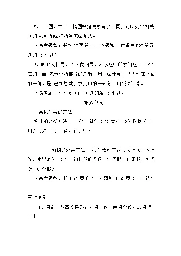 这份文档包含了冀教版一年级数学上册的一些核心知识点和易考内容,对于学生进行数学学习和考试都有很大的帮助。同时,文档中的注释和解释也较为详细,可以帮助学生更好地理解知识点。