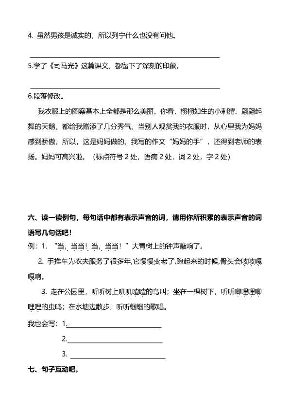 “三年级语文上册句子专项练习”是一份专为三年级学生设计的语文句子练习册。这份练习册旨在帮助学生掌握各种句子的类型和构成要素,包括陈述句、疑问句、祈使句等。