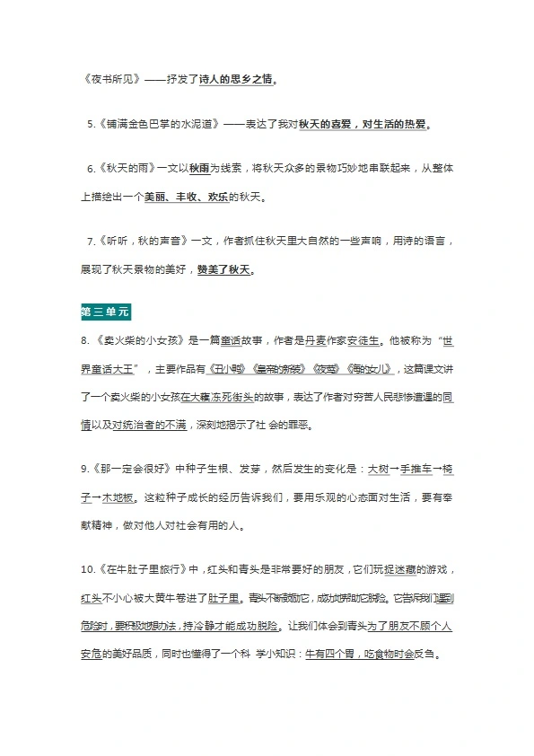 三年级语文上册各课的中心思想总结,是针对小学三年级语文课本中每篇课文所蕴含的核心思想和主题进行的概括和提炼。通过对这些中心思想的学习,学生可以更好地理解课文内容,把握作者的写作意图,培养自己的阅读能力和文学鉴赏能力。这些课文涵盖了诗歌、散文、童话、寓言等多种文学形式,旨在激发学生的阅读兴趣,丰富他们的精神世界,提高他们的人文素养。