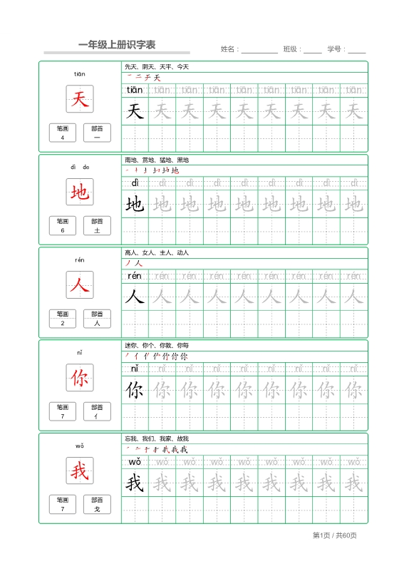 一年级语文上册识字表字帖描红是一本专为一年级学生设计的汉字学习教材。本书根据新课标要求,精选了一年级上册的常用汉字,通过精美的字帖设计,让学生在描红的过程中掌握汉字的基本结构和笔画顺序。同时,本书还配有丰富的插图和例句,帮助学生理解汉字的意义和用法,提高学生的阅读能力。此外,本书还注重培养学生的审美情趣,通过优美的字体和版式设计,让学生在学习汉字的过程中感受到中华传统文化的魅力。总之,一年级语文上册识字表字帖描红是一本既实用又有趣的汉字学习教材,适合一年级学生使用。