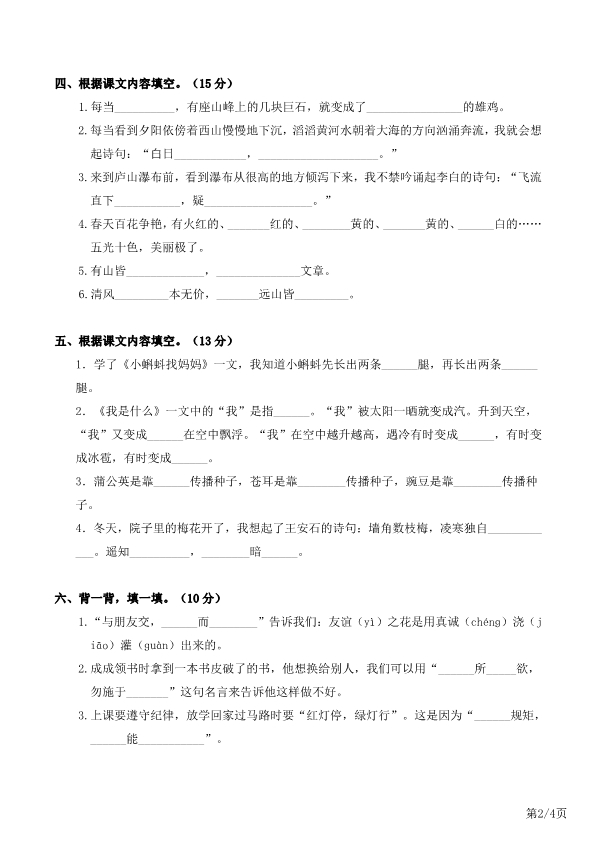 二年级上册语文期末复习:课文背诵日积月累”是一种针对二年级学生在语文学习过程中的一个重要阶段的复习方法。这个阶段主要侧重于对课文内容的理解和记忆,通过日积月累的背诵,使学生能够熟练掌握课文内容,提高阅读理解能力和语言表达能力。这种复习方法强调每天坚持背诵,不断积累,从而达到巩固知识、提高能力的目的。