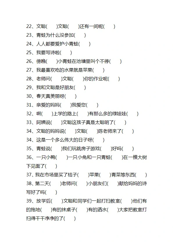 二年级上册语文标点符号歌是一首帮助学生记忆常见标点符号的儿歌。这首儿歌用简单易懂的语言介绍了逗号、句号、问号、感叹号等常见标点符号的用法和形状。通过这首儿歌,学生们可以更加轻松地掌握标点符号的用法,提高他们的阅读和写作能力。通过这些练习题的训练,学生们可以更加自信地使用标点符号,提高自己的语言表达能力和阅读理解能力。