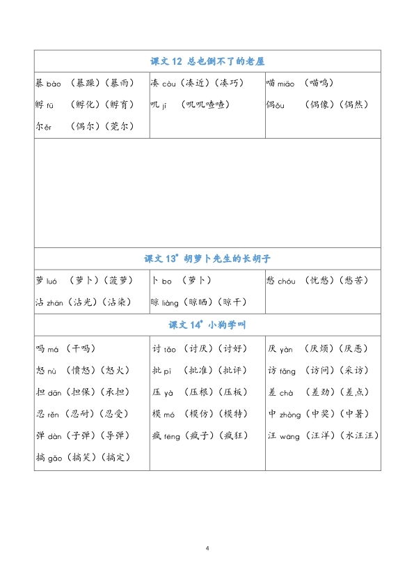 “三(上)语文识字表生字组词汇总”是针对三年级上册语文教材中的识字表所列出的生字进行整理和总结的资料。这份资料将每个生字及其对应的词语进行了分类和归纳,以帮助学生更好地掌握和应用这些生字。通过这份资料,学生可以更系统地学习和记忆生字,提高自己的识字能力和词汇量。同时,这份资料也为教师提供了一份便捷的备课参考,帮助他们更好地组织教学内容和设计教学活动。总之,“三(上)语文识字表生字组词汇总”是一份对学生和教师都十分有用的学习资料。