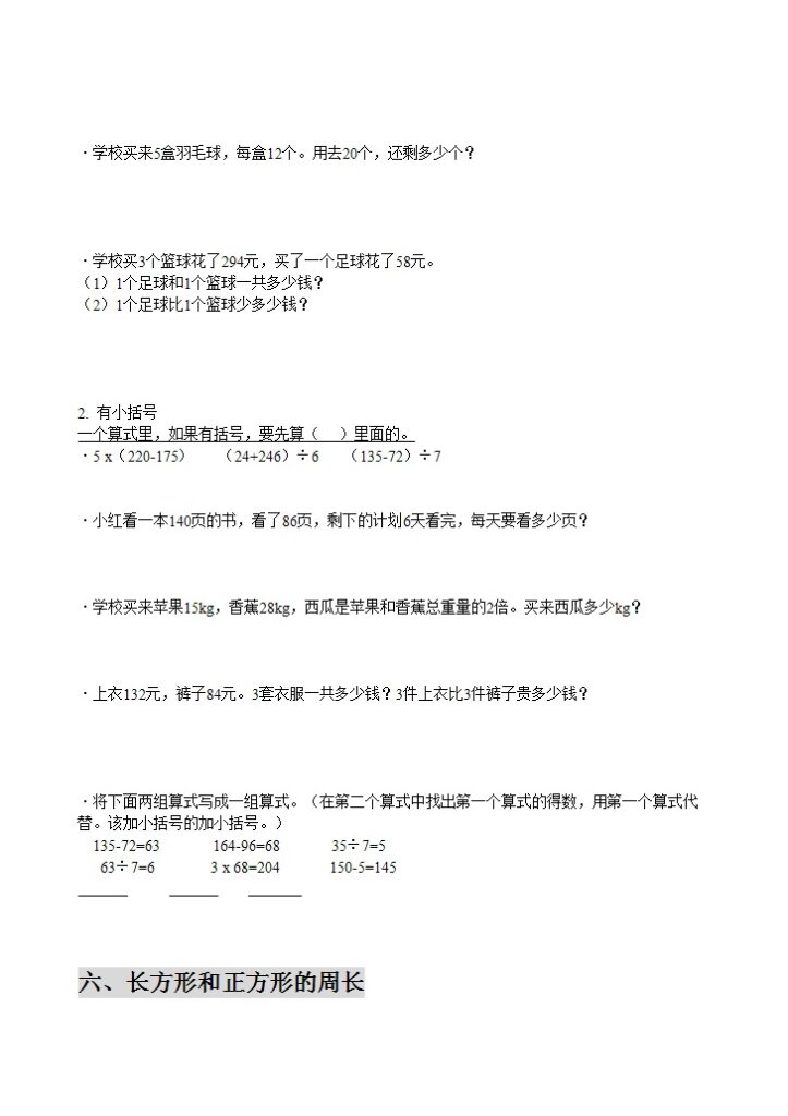 冀教版三年级上册数学知识点预习复习资料包括以上内容主要讲述了生活中的大数、两三位数乘一位数、图形的运动、两三位数除以一位数、四则混合运算、长方形和正方形的周长以及吨的认识等知识。