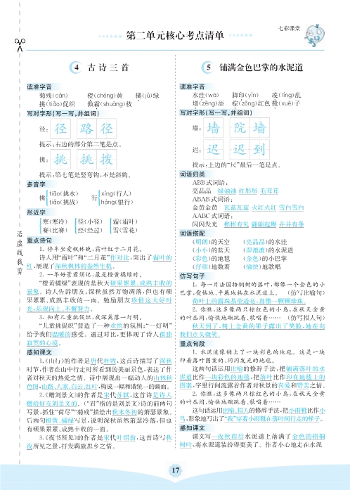 “三年级上册语文第二单元核心考点清单”是一份详细的指南,旨在帮助学生掌握三年级上册语文教材第二单元的核心知识点。该清单涵盖了重点字词和短语的读音、书写、意义和用法,提供阅读理解技巧的指导和练习,强调语言表达和写作能力的训练,介绍传统文化知识及其历史背景和文化内涵,并设计综合性学习题目以培养学生的语文综合能力。通过这份清单,学生可以明确学习目标和重点,进行有针对性的学习和准备,提高语文水平和应试能力。同时,教师也可以根据这份清单了解学生的学习情况和需求,以便更好地指导学生的学习。